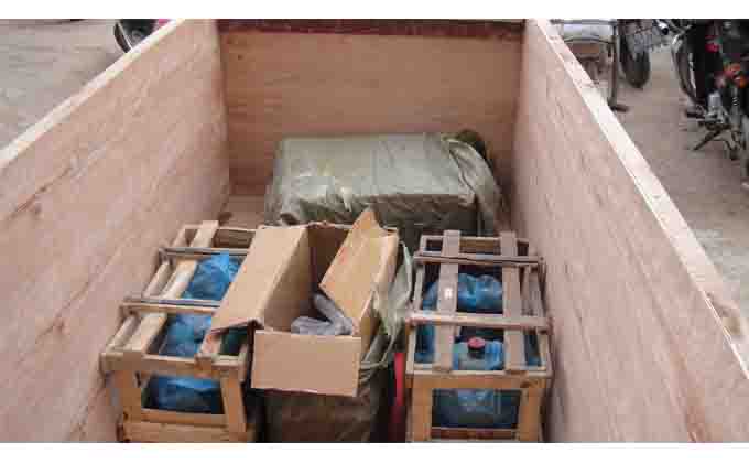 出口剛果的第一批灑水車(chē)配件裝箱圖片